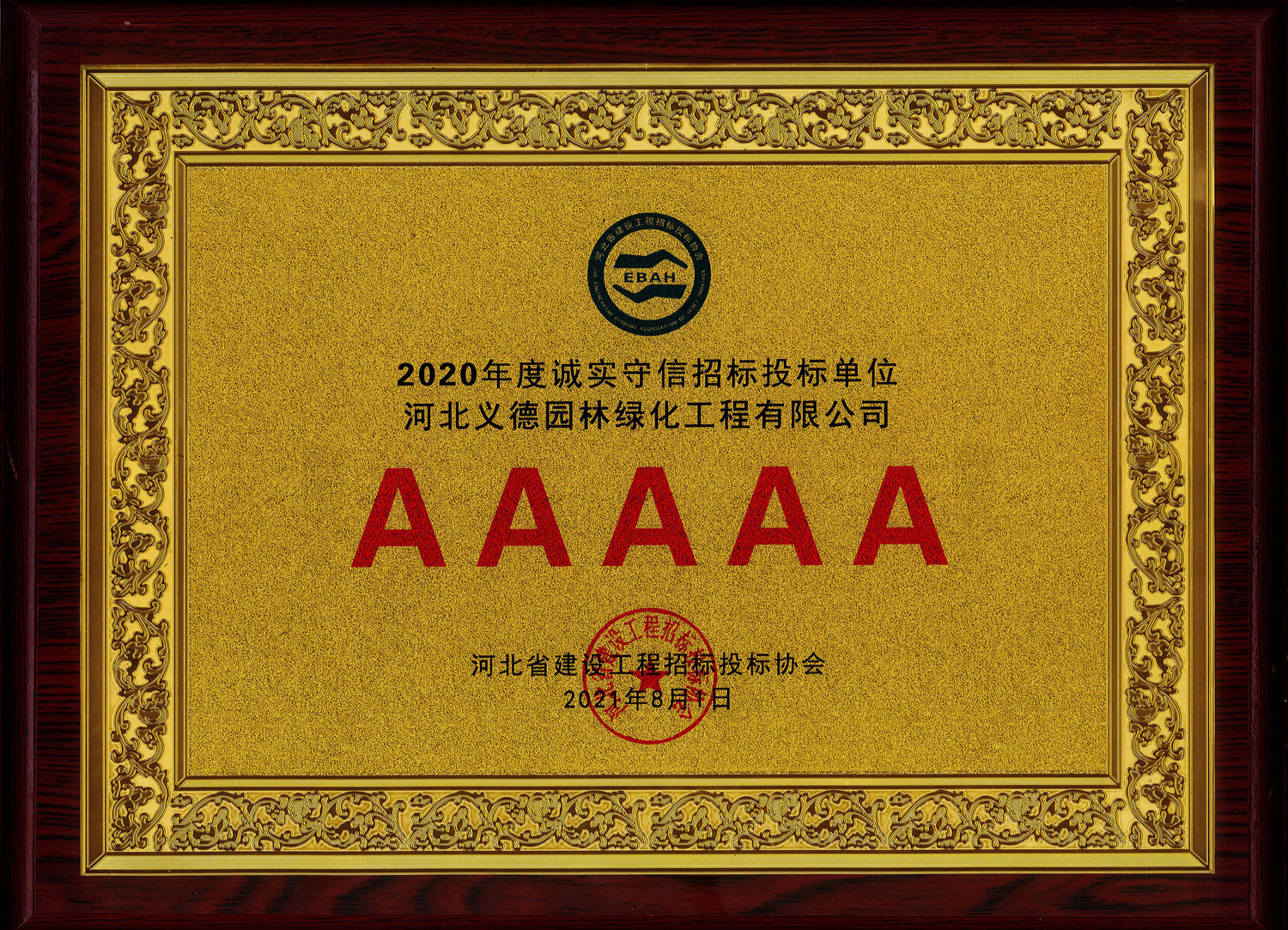近幾年來我公司被授予2019年-2022年河北省扶貧龍頭企業(yè)、2018年國家林業(yè)標(biāo)準(zhǔn)化示范企業(yè)、2019年度全國苗圃50強(qiáng)、2018-2019年度河北省林業(yè)重點(diǎn)龍頭企業(yè)、2018年保定市精品特色現(xiàn)代農(nóng)業(yè)園區(qū)、2018年度保定林木種苗協(xié)會(huì)授予特色苗圃、2018年度北方十佳特色苗圃、2016-2019年河北省建設(shè)工程招標(biāo)投標(biāo)誠實(shí)守信5A級施工企業(yè)等榮譽(yù)稱號,2017年保定市林木種苗龍頭企業(yè)、石家莊市2017年度優(yōu)秀園林企業(yè)。